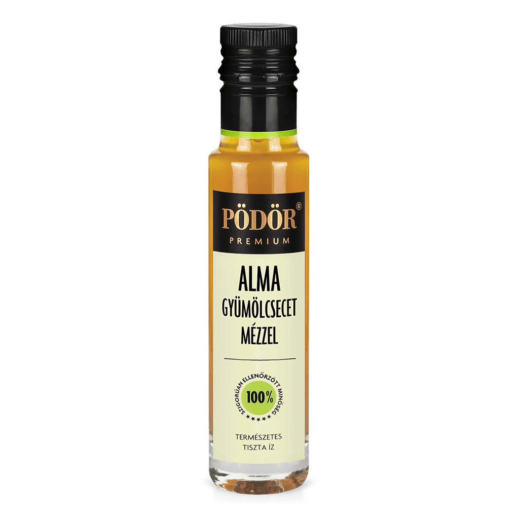 Ismerd meg a Pödör® Mézes Almaecetet, ami nem a nagymama savanyú ecete, hanem egy ízig-vérig prémium, 100% természetes különlegesség! Képzeld el a gondosan válogatott, friss alma pikáns zamatát, amit a helyi méhészek legfinomabb virágméze tesz ellenállhatatlanul lággyá. A 8% méztartalomnak köszönhetően ez az ecet egyszerre édes és friss, ami garantáltan új szintre emeli a konyhai alkotásaidat!
